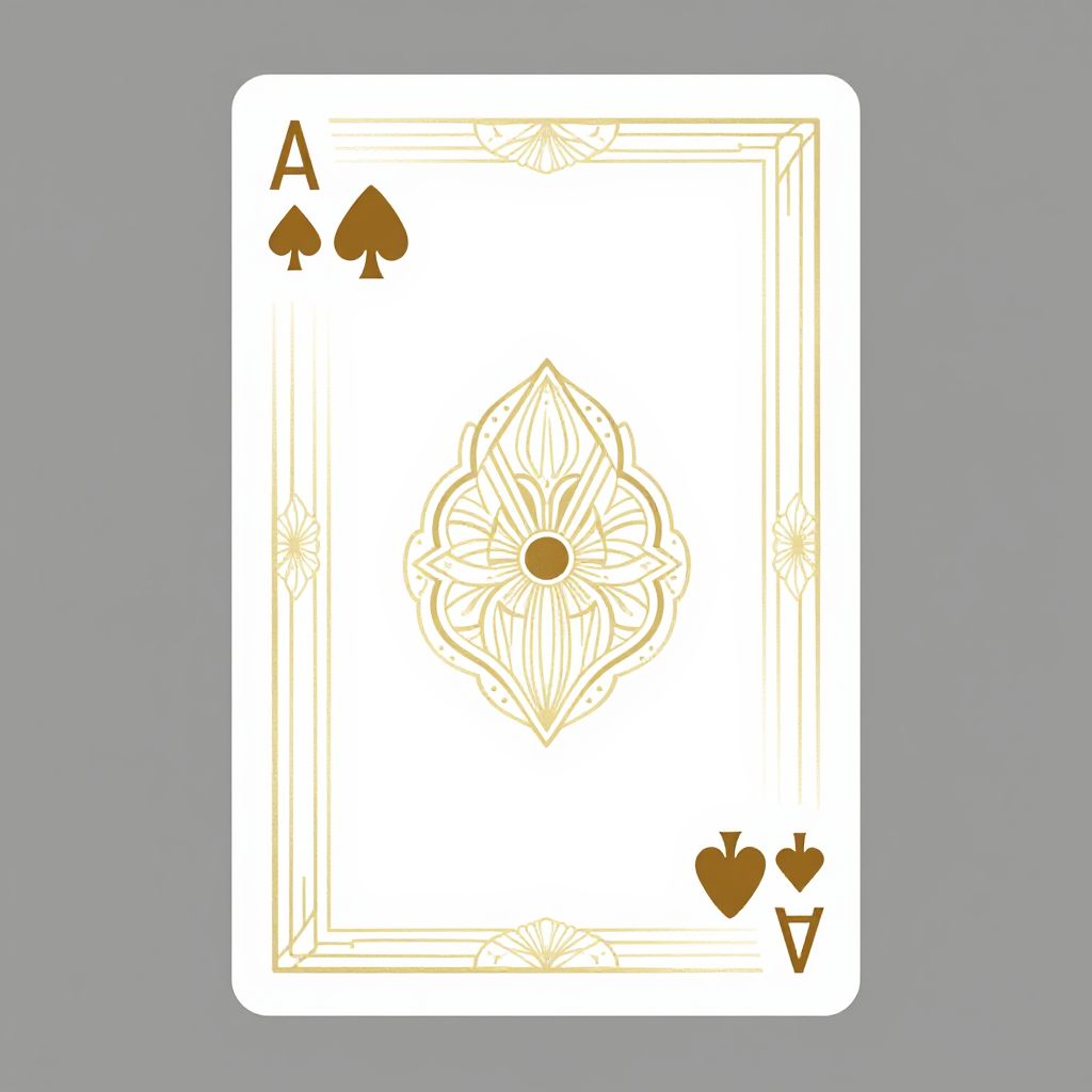 Digital illustration of an Ace of Spades playing card with gold floral design and spade symbols in top left and bottom right corners, on a white background