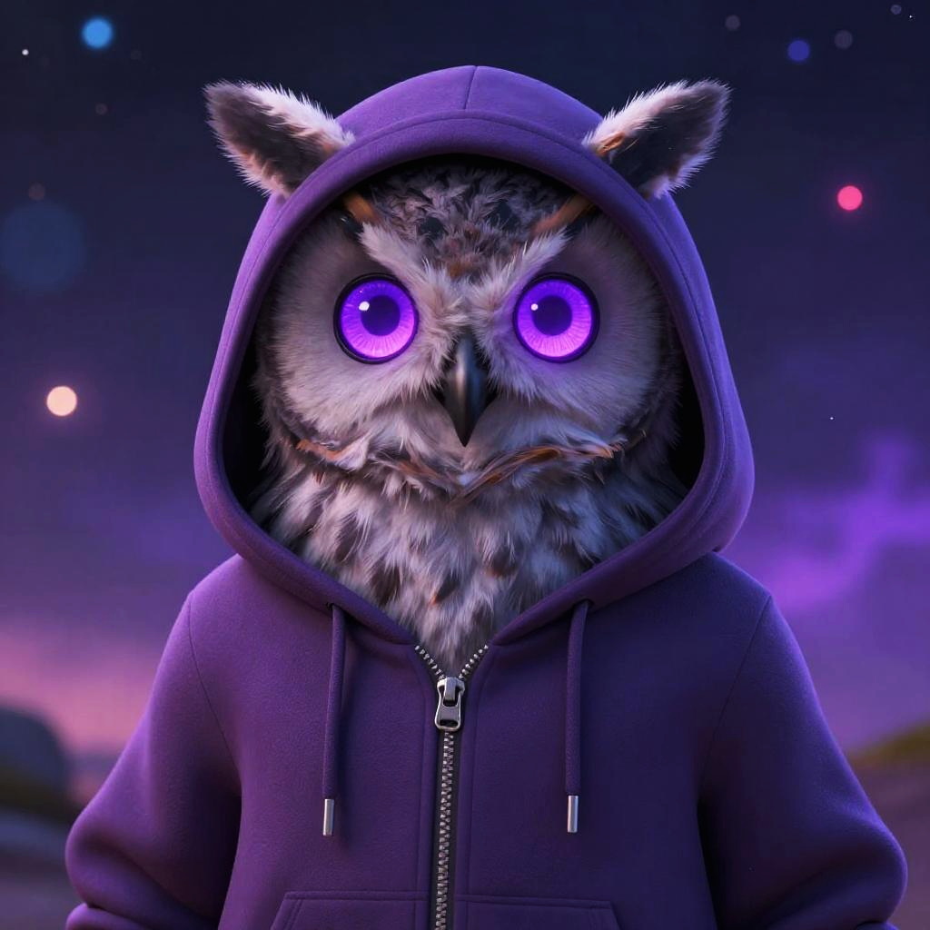 Mysterious Owl-Humanoid in Cosmic Hoodie