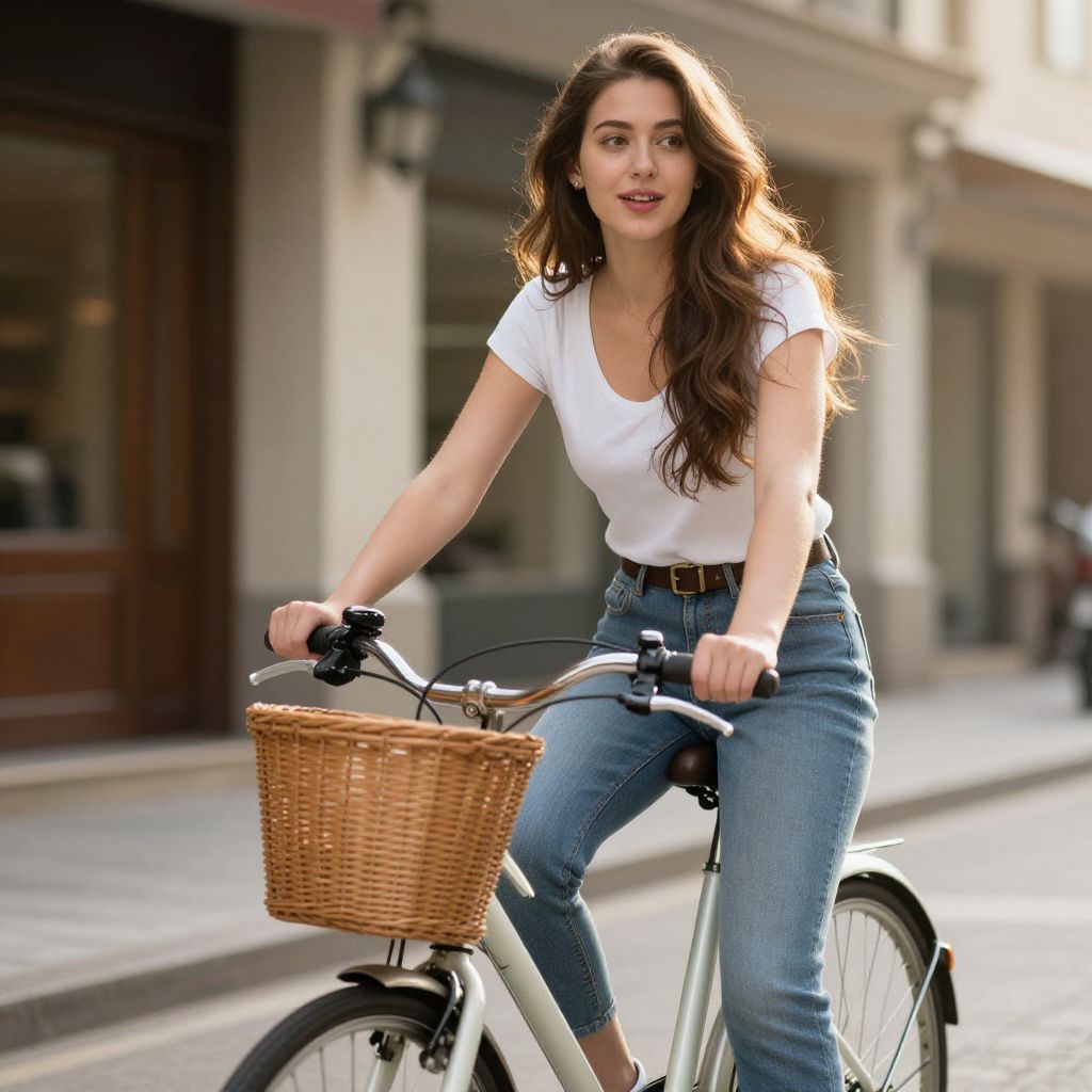 Woman Riding Bicycle Stock Photo