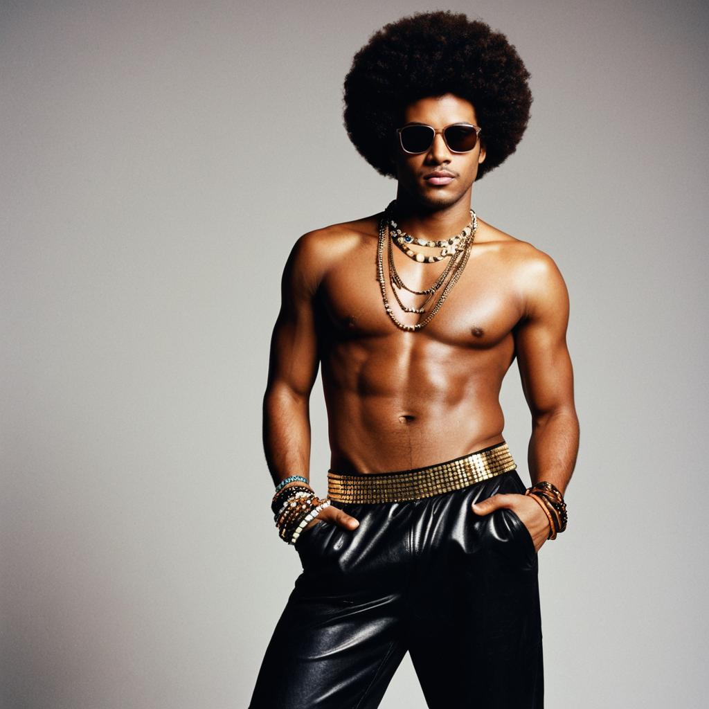 Man in Disco Outfit with Afro and Jewelry