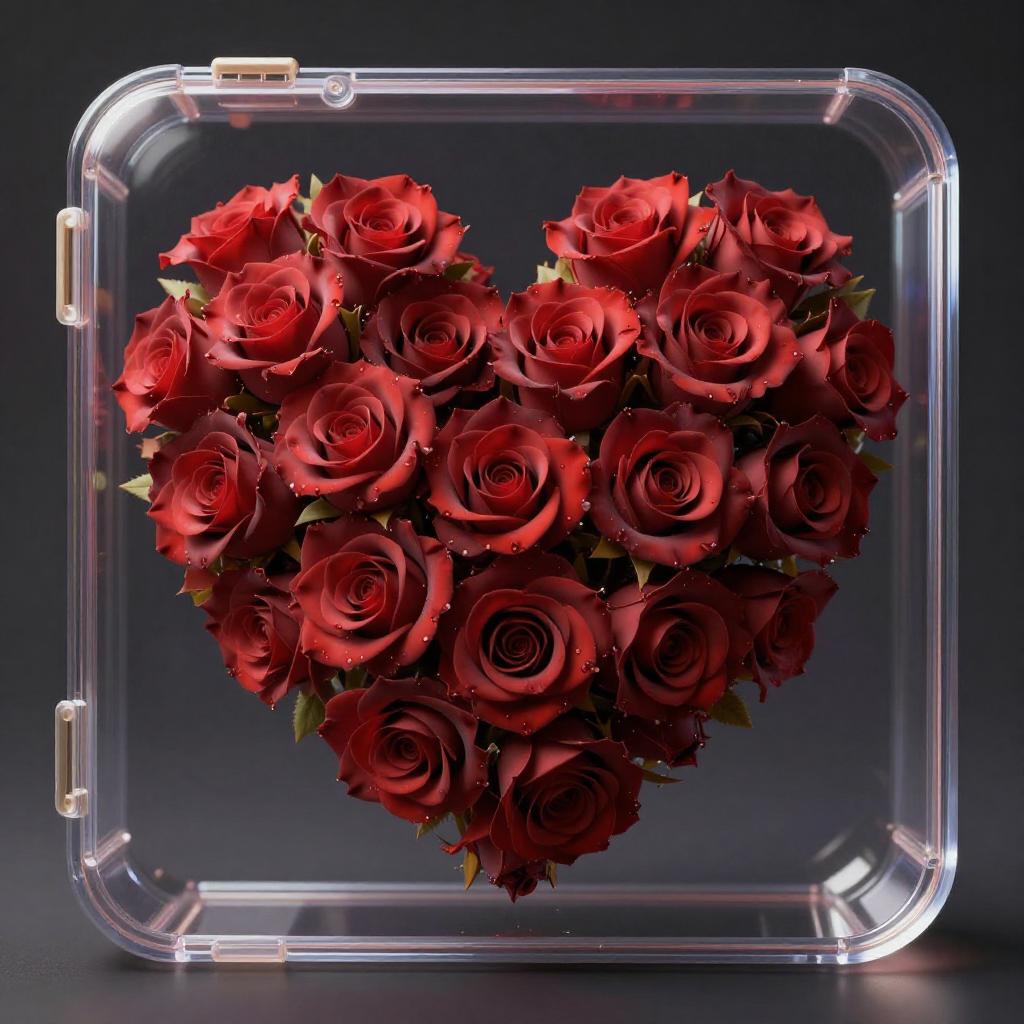 A heart made of roses in HeartArt style, micro-details, super detailed, photorealism, photorealistic, kc32, photorealistic heart made of roses in HeartArt style, very detailed, scifi case, heart made of roses in HeartArt style, scifi transparent case, art by midjourney