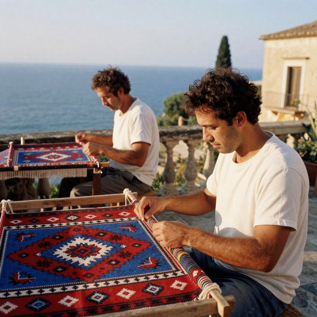 Scene of two street market vendors selling fresh produce, in a bustling Moroccan bazaar near ancient city walls, captured in vibrant saturated tones. Midday lighting, subtle analog noise, rich orange color palette, Ilford HP5 Plus film effect, lively and energetic ambiance.