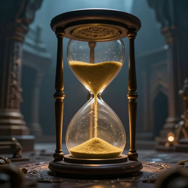 Amidst the hushed whispers of an ancient city, a colossal hourglass stands as a sentinel of transience, its golden sands flowing backward to unveil a hidden world where time unravels in reverse, casting an ethereal glow that dances between serenity and mystery.