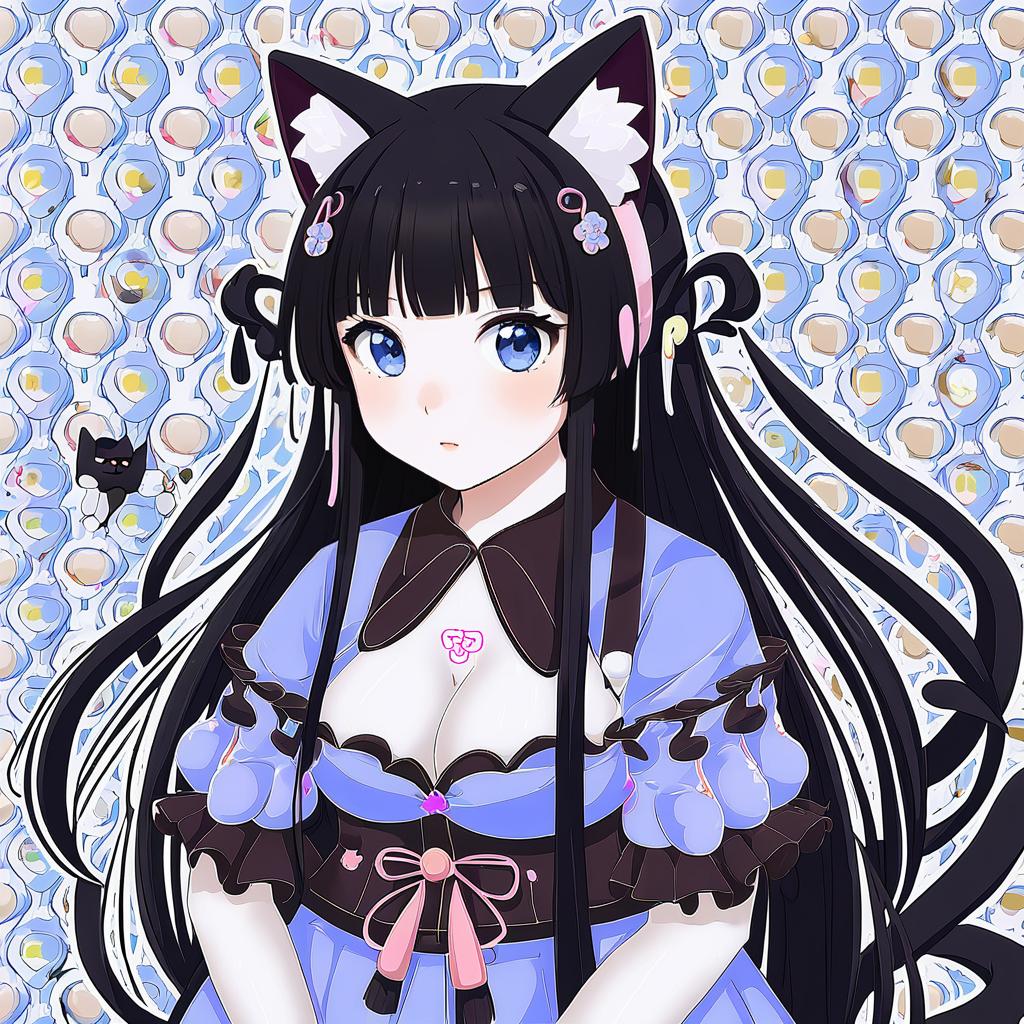 Aiba uiha, nijisanji, 1girl, blue eyes, mole under eye, black hair, long hair, purple hair, hair bow, blue bow, virtual youtuber, virtual youtuber, by artist wacchi, anime