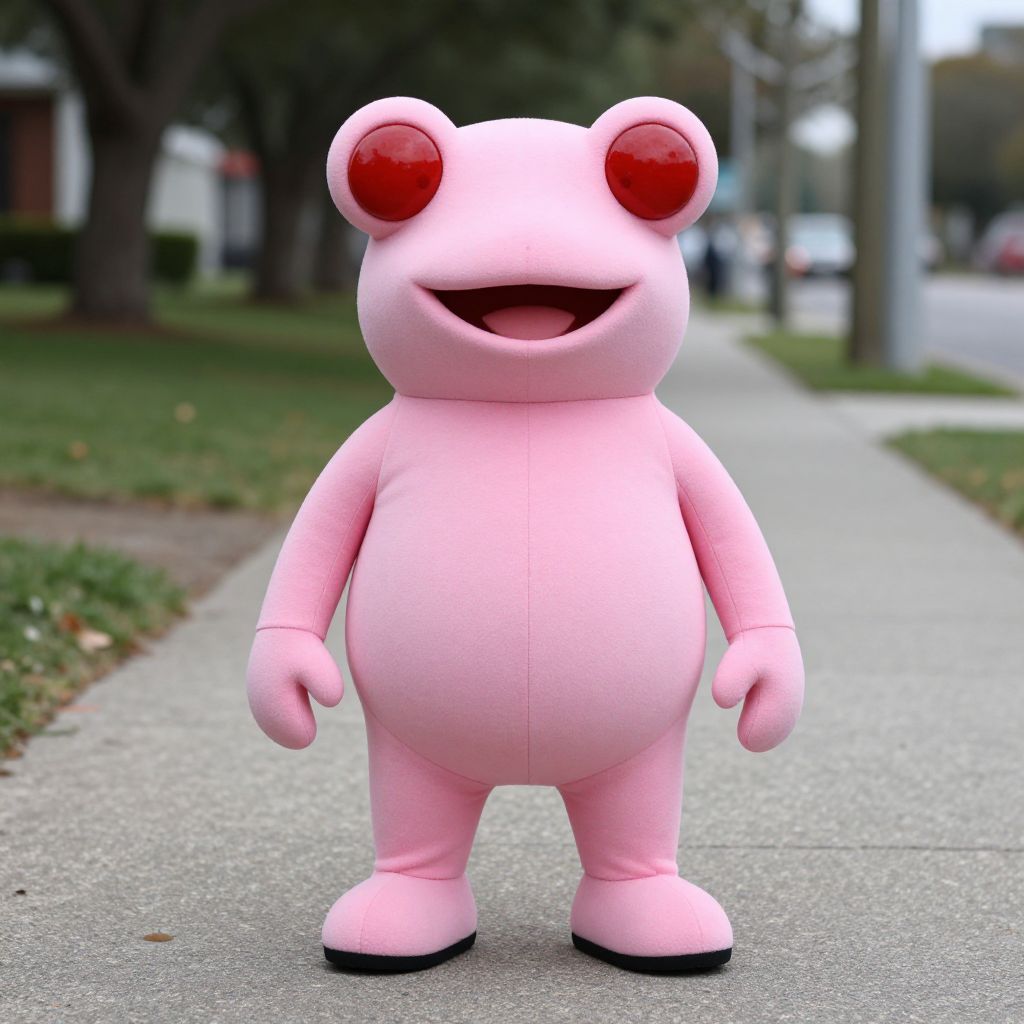 Pink Toad Costume, in a pink costume standing on a sidewalk