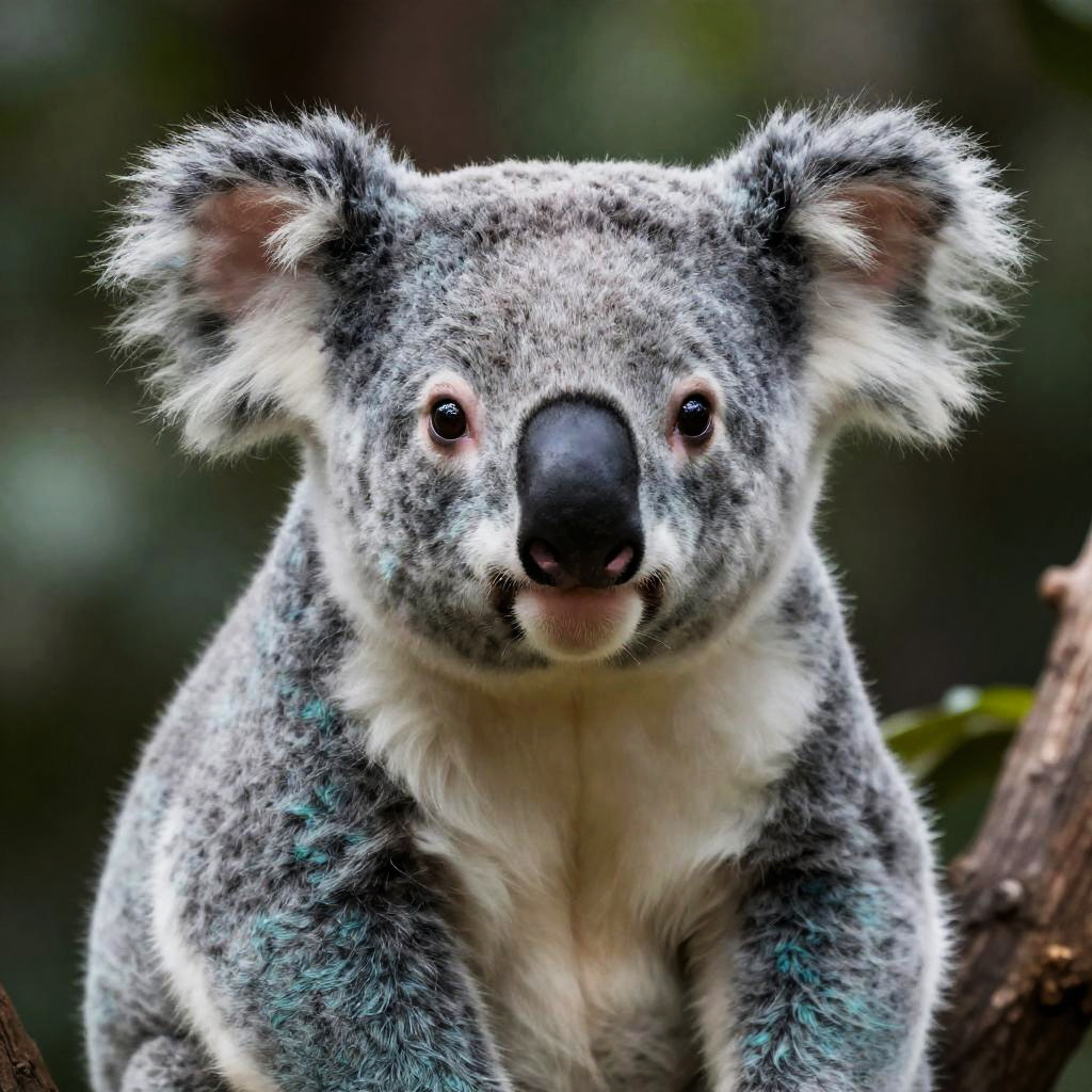 Koala, mint teal, highly detailed, anatomically correct, fluffy face, ear floof, flowing fur, super realism, accurate animal imagery, 4K digital art.