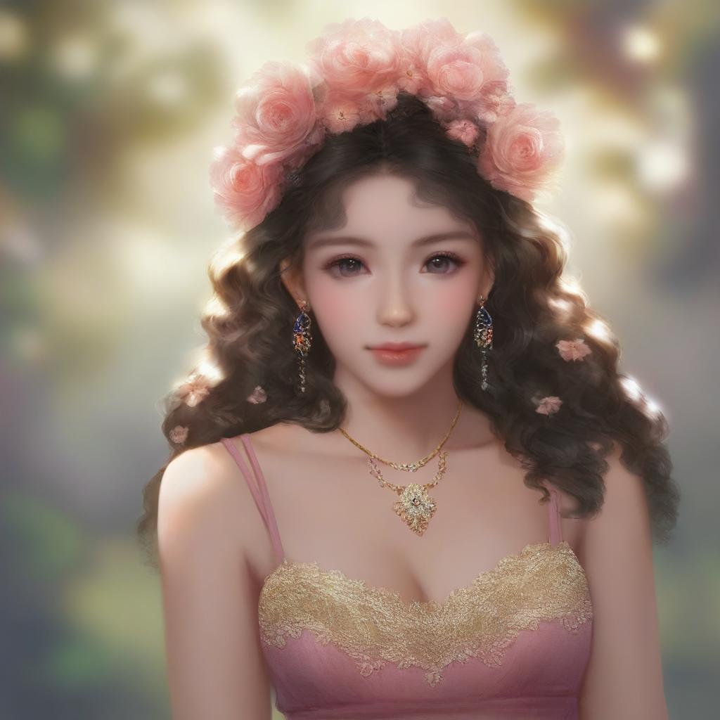 Sunlit Floral Jewelry Curly Hair Portrait