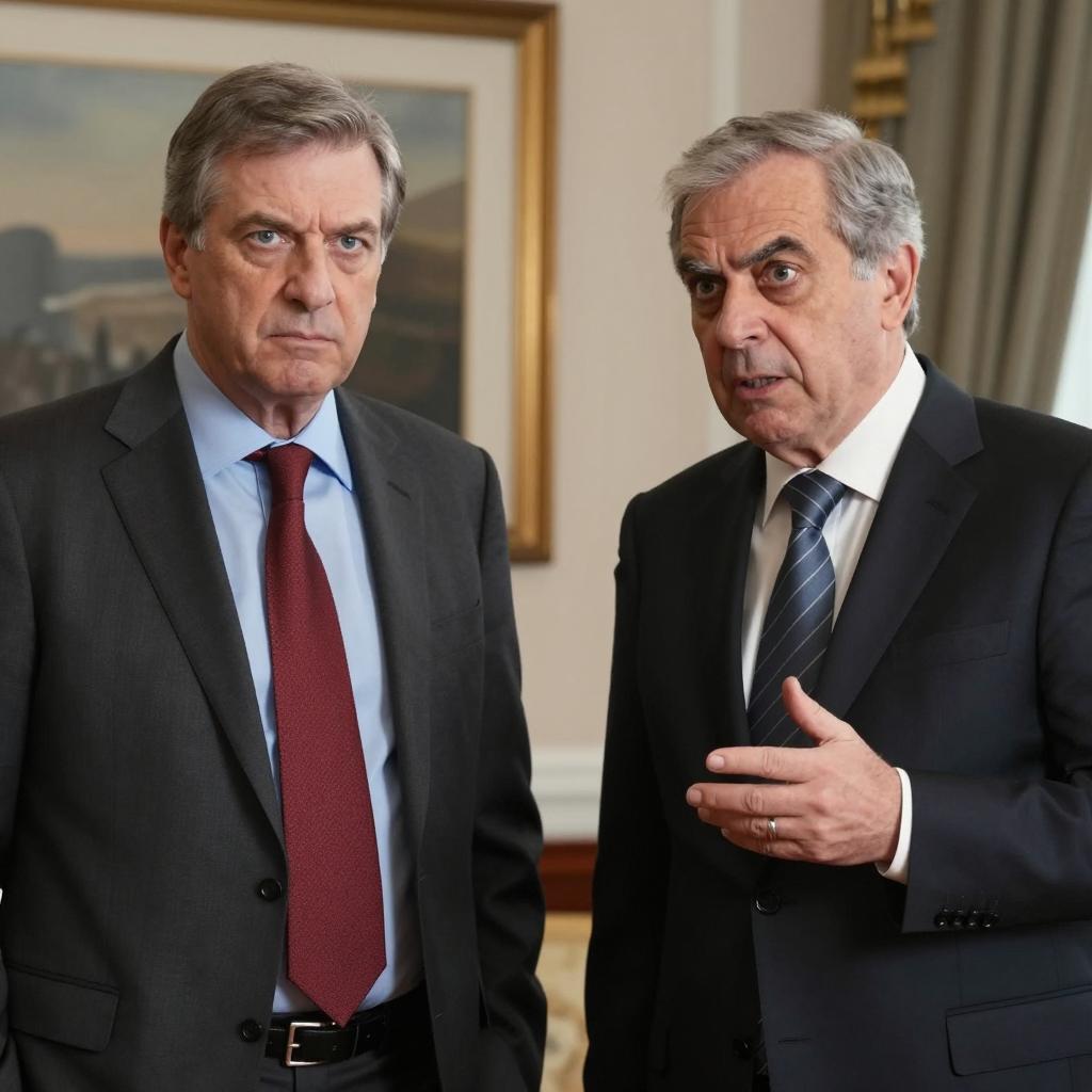 Photograph of an older man with gray hair, wearing a dark suit, standing in front of a framed painting of a coastal town named San Francisco in May. He is looking at the painting, his right hand resting on the frame. Wooden paneled wall in the background. The painting shows a mountainous landscape, houses, and a cloudy sky.