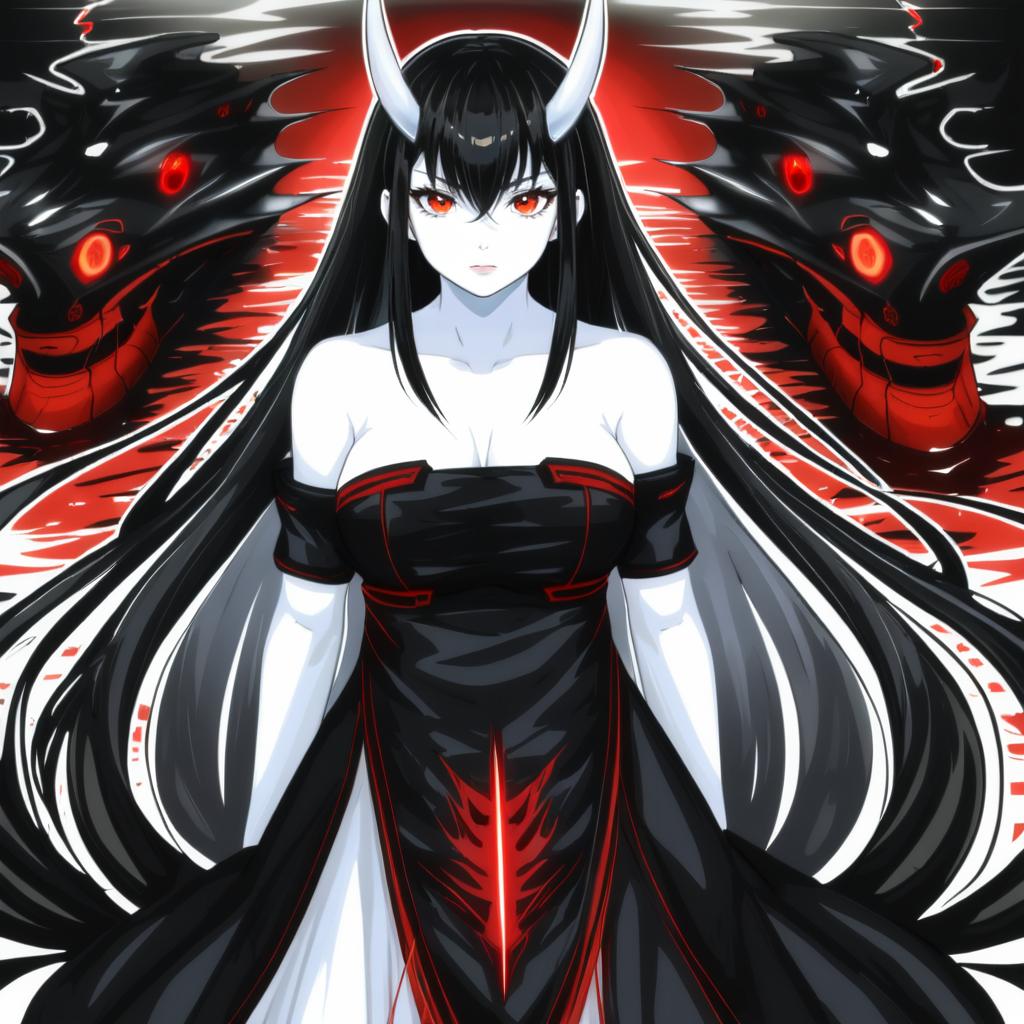 Alexandrina sebastiane, zenless zone zero, 1girl, maid, maid headdress, maid, red eyes, hair between eyes, grey hair, very long hair, long hair, low-tied long hair, large breasts, partially fingerless gloves, black gloves, black dress, by artist kousaki rui, anime