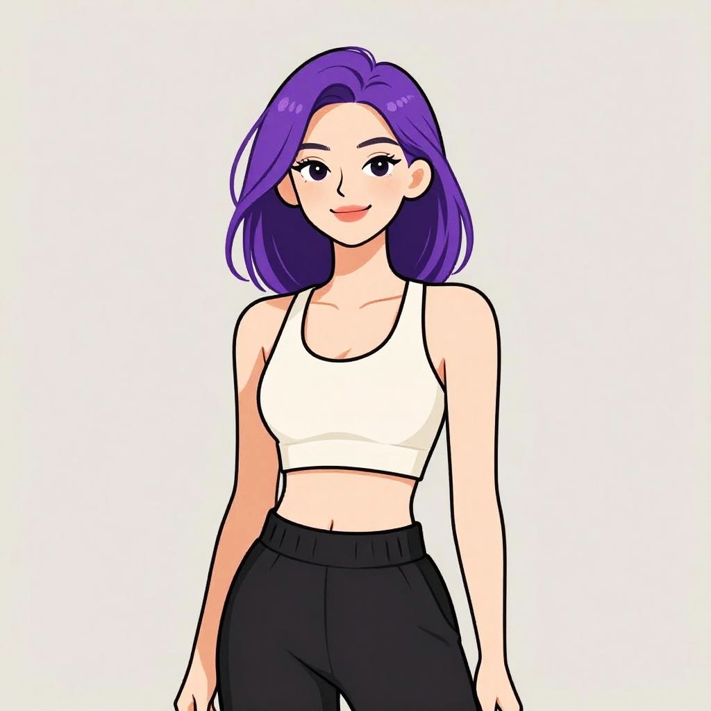 Woman with pretty face and pretty hair. smiling Woman, athletic wear, black sports crop top, crossed front detail, spaghetti straps, coordinating high-waisted athletic shorts, stretch fabric, plain design, white logo on the left leg, white background. --sref 1467