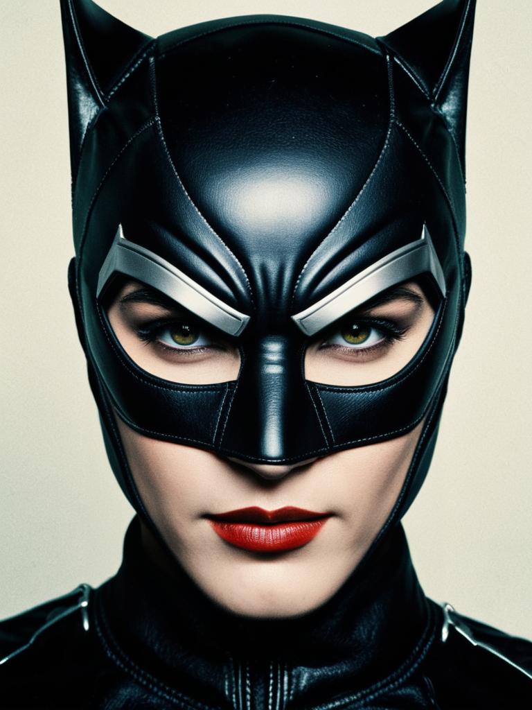 Man in Catwoman Costume, close-up detailed headshot with mask