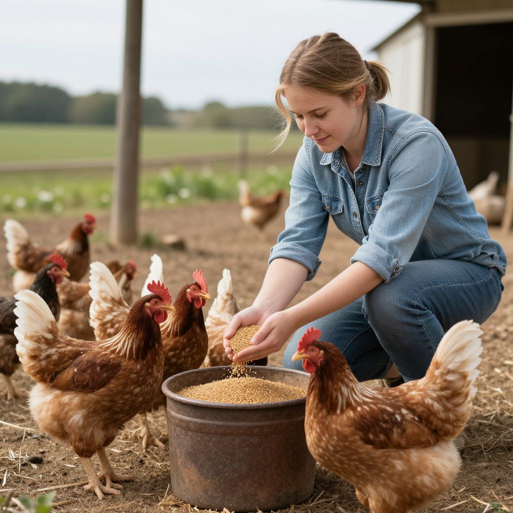 Woman Feeding Chickens on Farm
