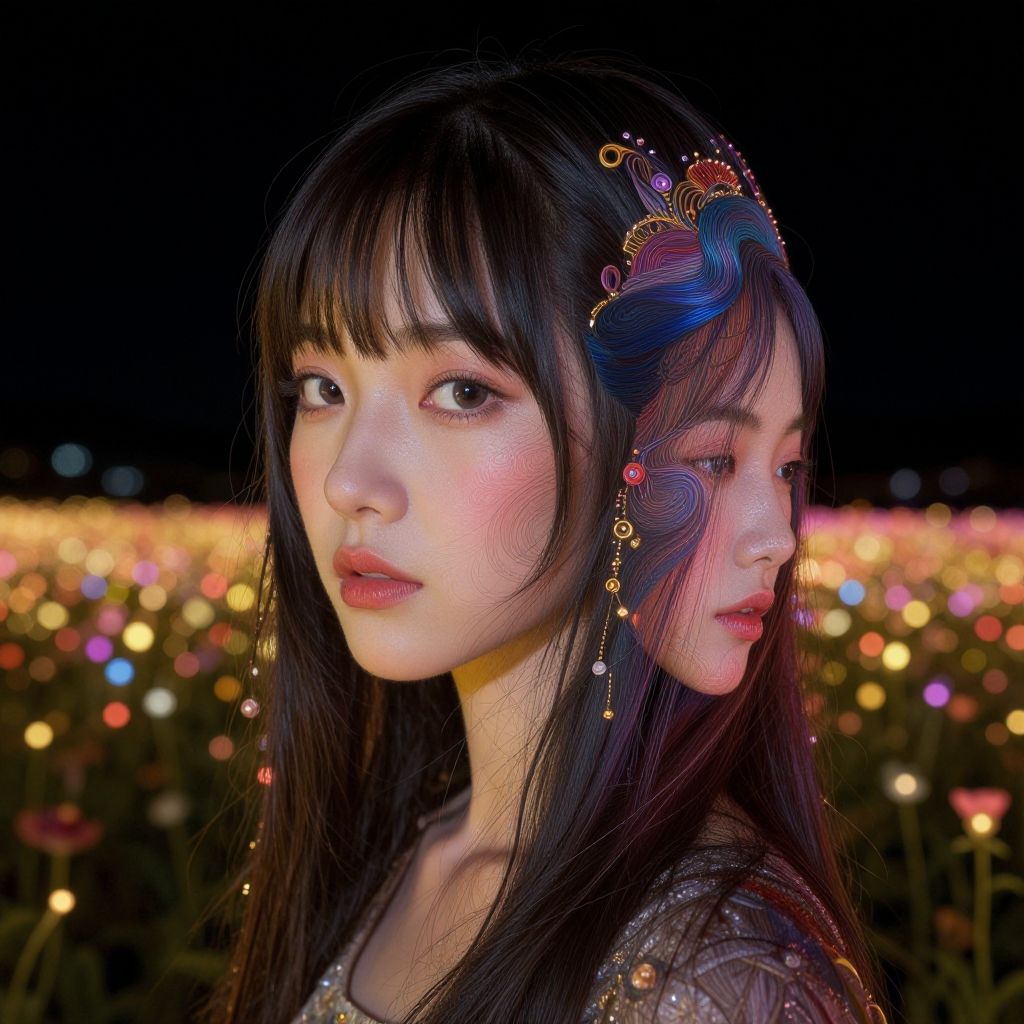 Ijlin, 1girl, night, sky, dark, glowfield of view, field of depth, focus, blur, blurry, lens, ultra quality, full detailed, 40k, best quality, ultra quality faces, 8k portrait intricate, elegant, highly detailed, majestic, digital photography, art by artgerm and ruan jia and greg rutkowski surreal painting, (masterpiece, black background), cute, (masterpiece), highly insanely detailed, masterpiece, top quality, highres, 4k, 8k, high quality, HD, cinematic still, colors, ambient lighting, ultra-detailed, illustration, vivid colorful, best shadow, best illumination, finely detail, (extremely detailed), (8k wallpaper), (best quality), hard lighting, (tracing)