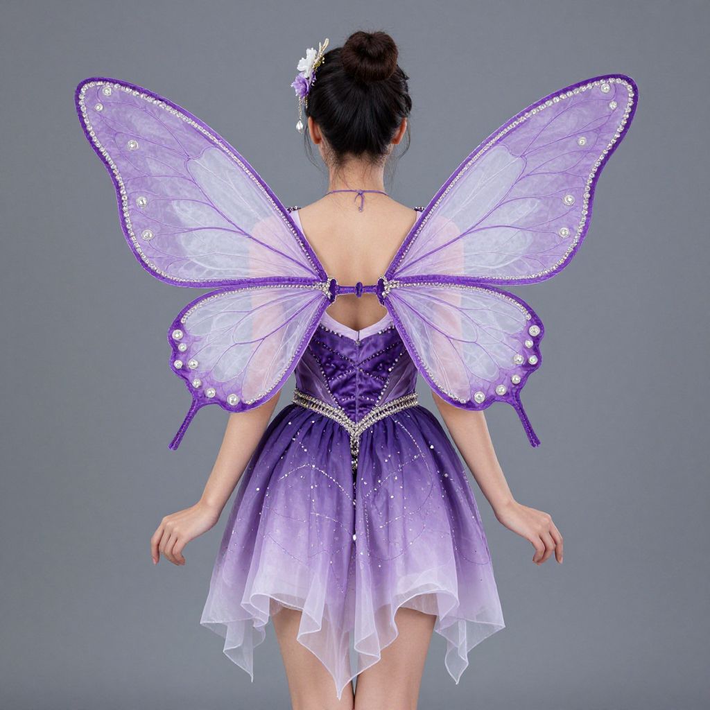"Woman Purple Fairy Costume, purple fairy costume with butterfly wings and purple dress"