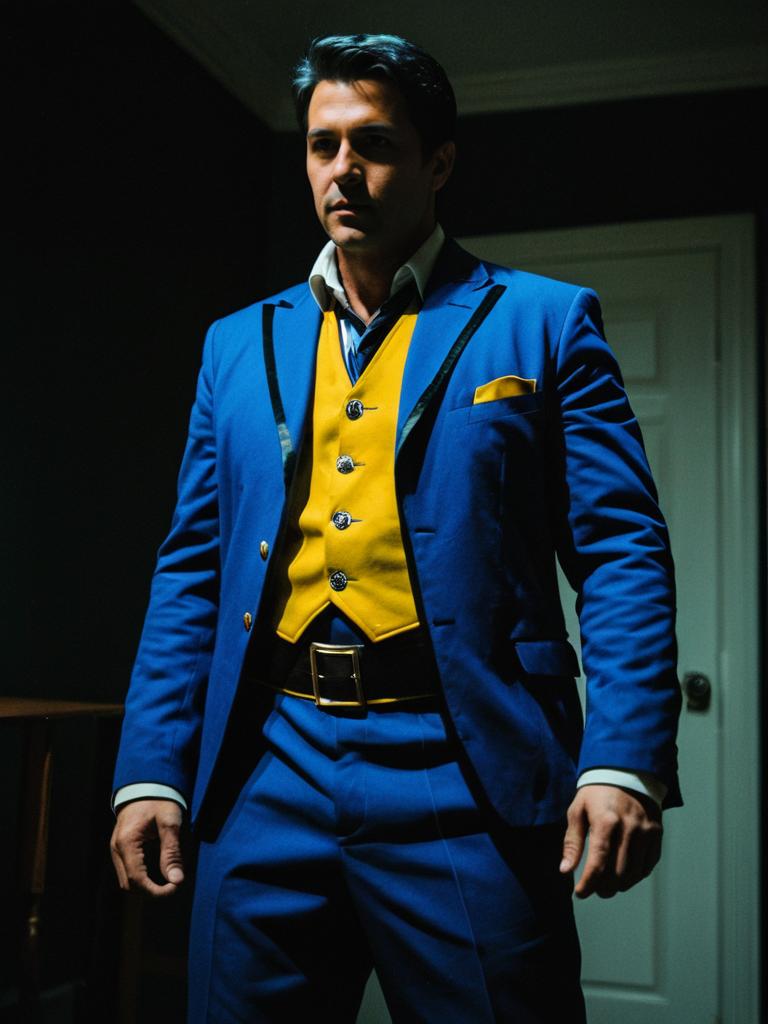 Man in One Night Stand Costume, waist-up cosplay photo, cinematic realism