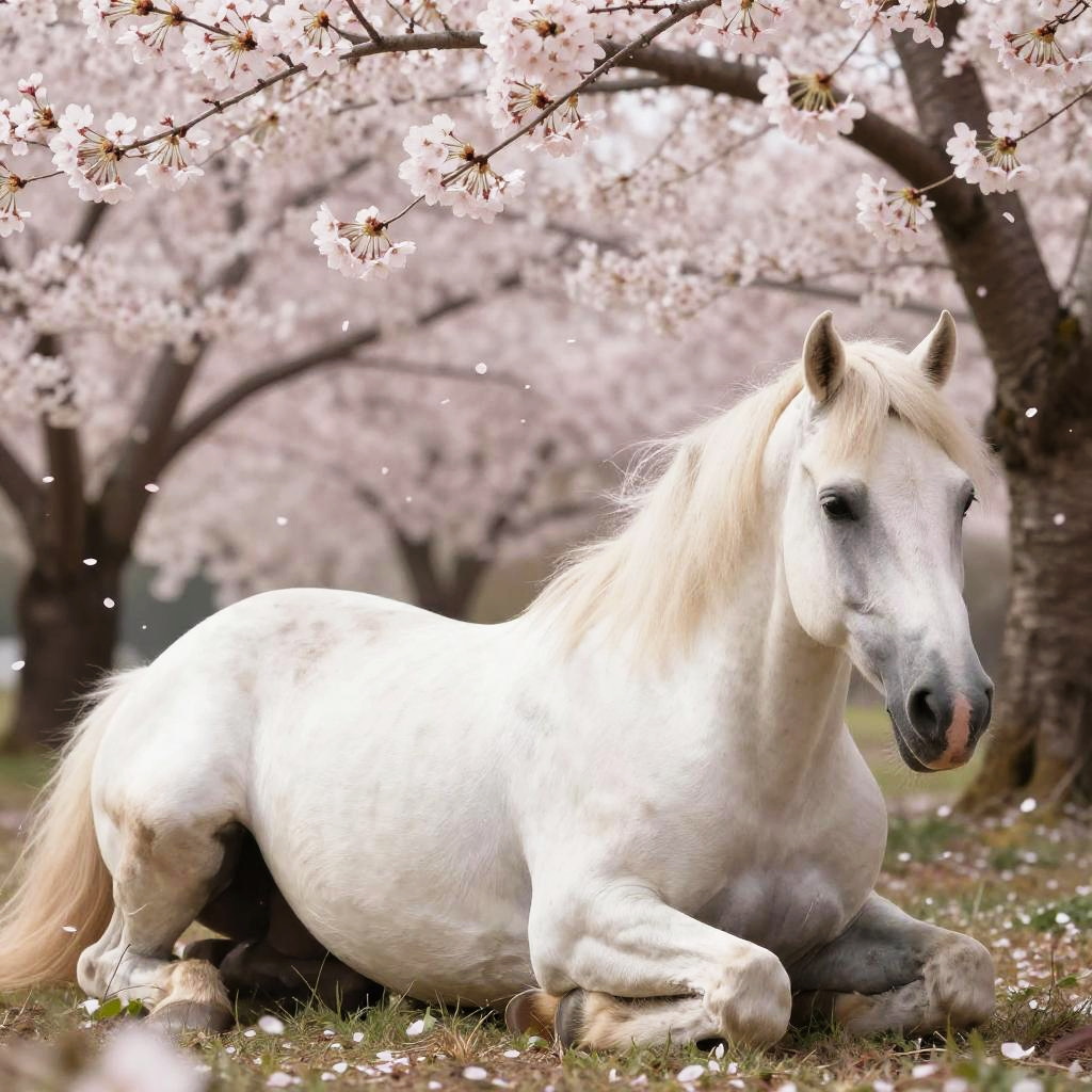 Horse in flower field, close-up of a horse’s face framed by vibrant tulips and bright red flowers, morning mist, delicate textures, warm and inviting natural landscape, calm and intimate portrait