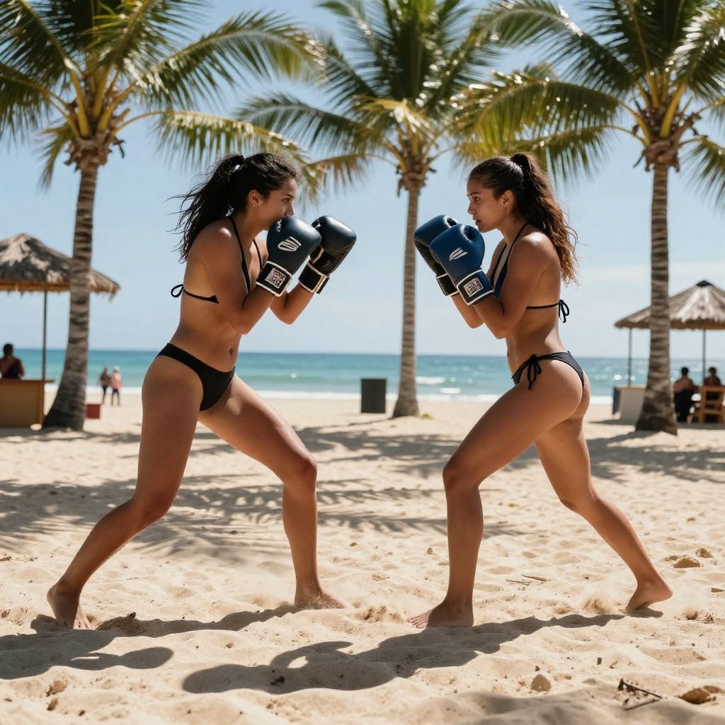 Tropical Bikini Boxing Sparring Scene