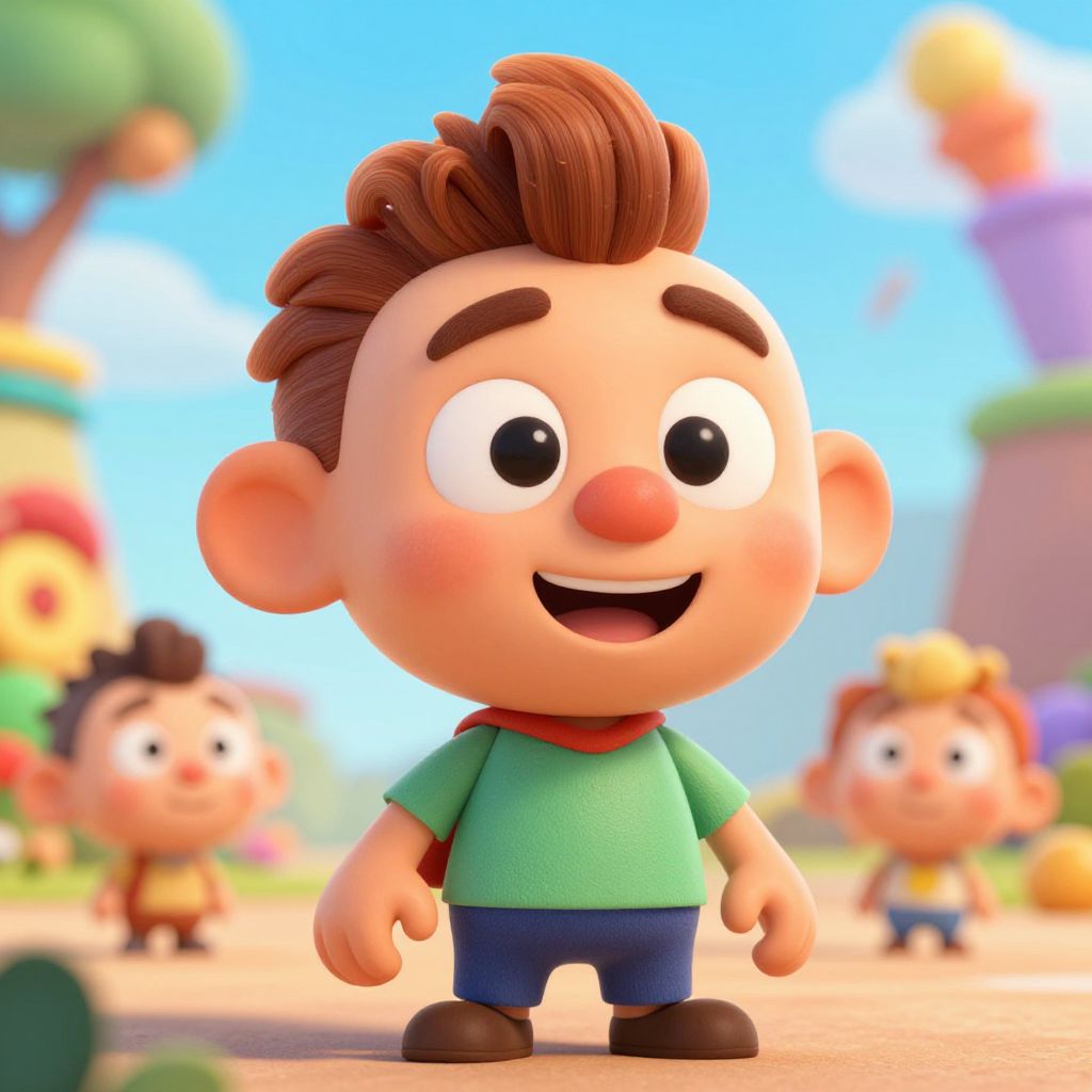 Peter Peppers images of a whimsical animated character with vibrant colors, friendly expression, and playful background, digital art style, suitable for children's storybook illustration, detailed textures, bright and cheerful atmosphere.
