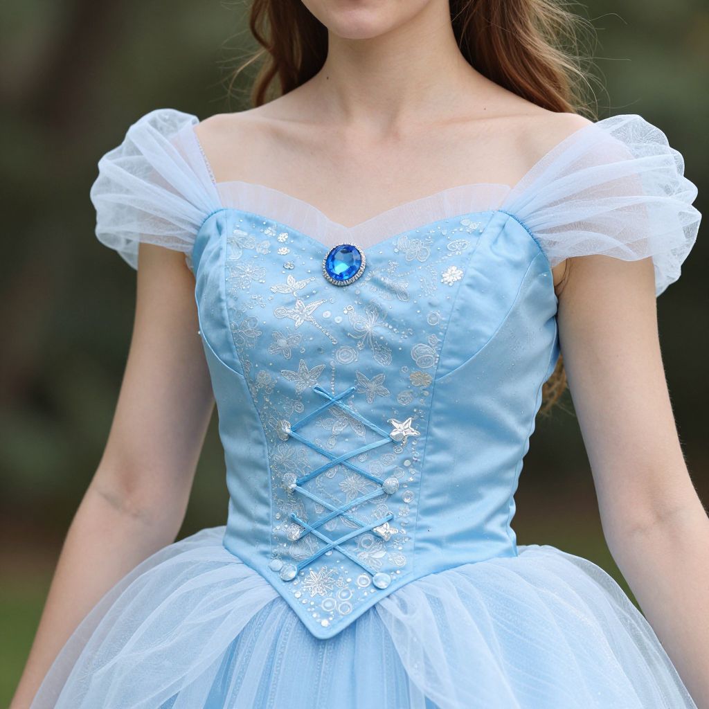 Princess Aurora Blue Dress, a close up of a woman in a blue dress with a tia