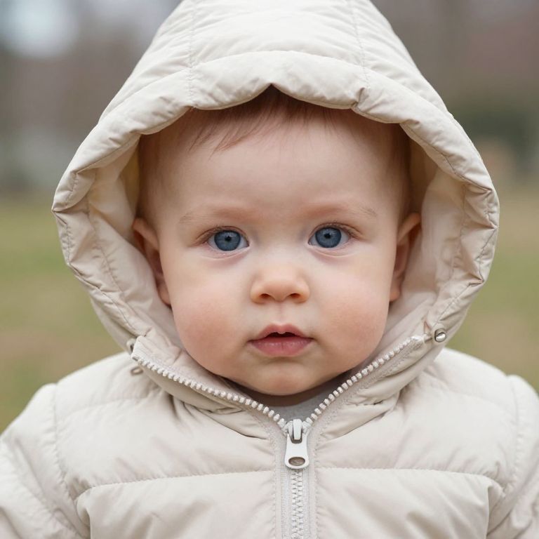 Blue-Eyed Baby in Beige Winter Coat