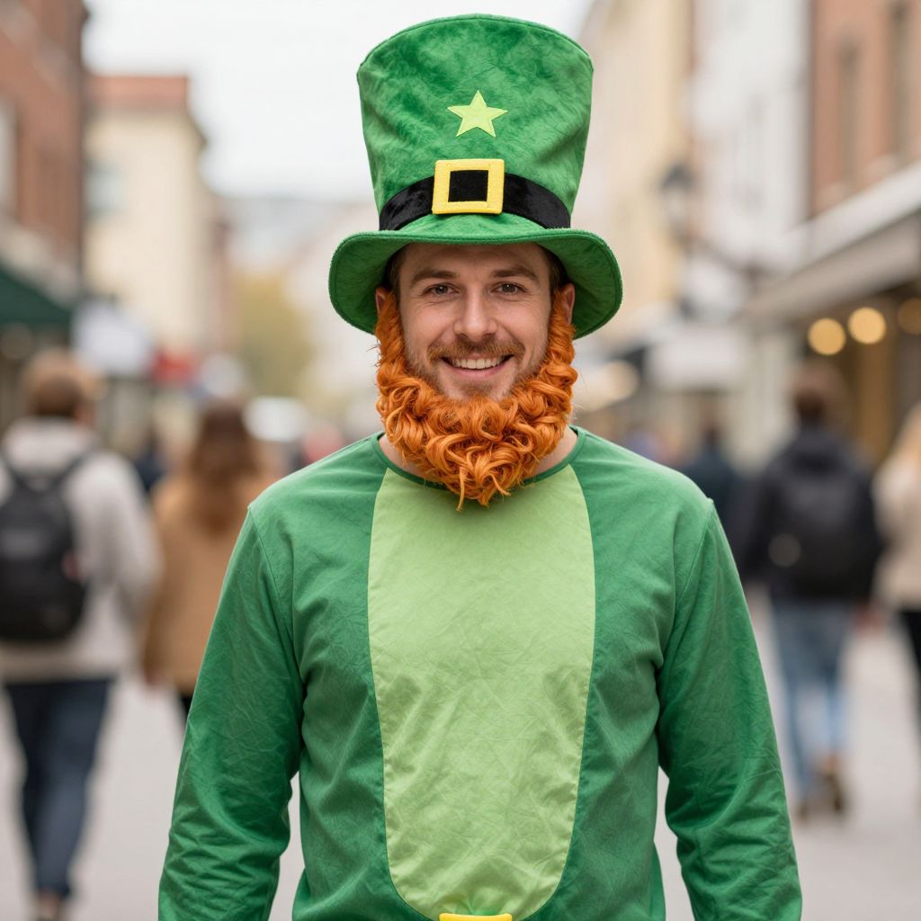 Pub Crawl Leprechaun Adult Costume, man with a beard and a green hat
