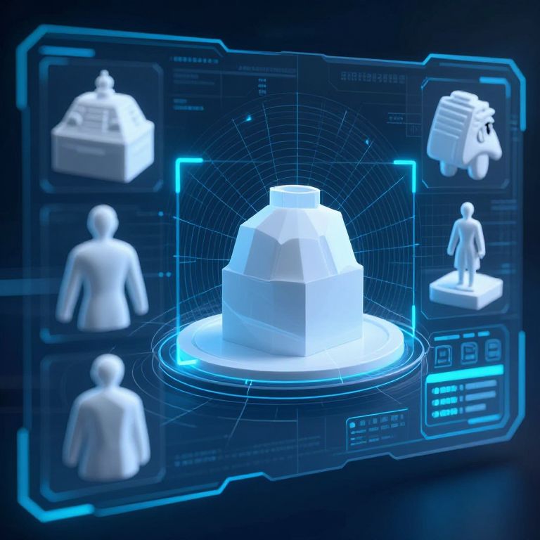 Pictures to 3D scanning technology, hyper-realistic depiction of flat pictures being scanned and reconstructed into lifelike 3D forms, digital mesh overlays, futuristic interface, science and innovation theme with glowing blue highlights
