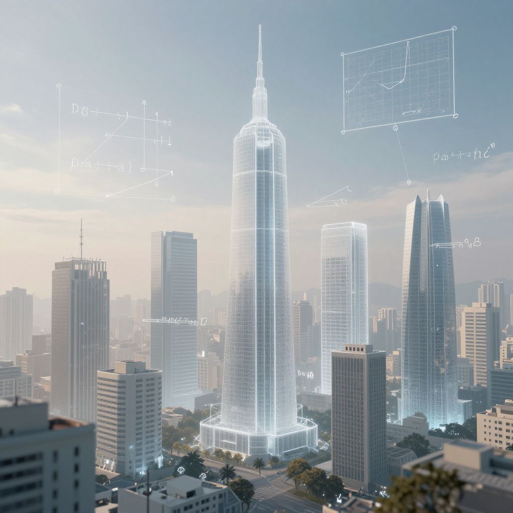 A mesmerizing cityscape of ethereal skyscrapers constructed from floating mathematical equations hums with the quiet resonance of unresolved truths, evoking a sense of infinite curiosity and the transcendental beauty of human ingenuity.