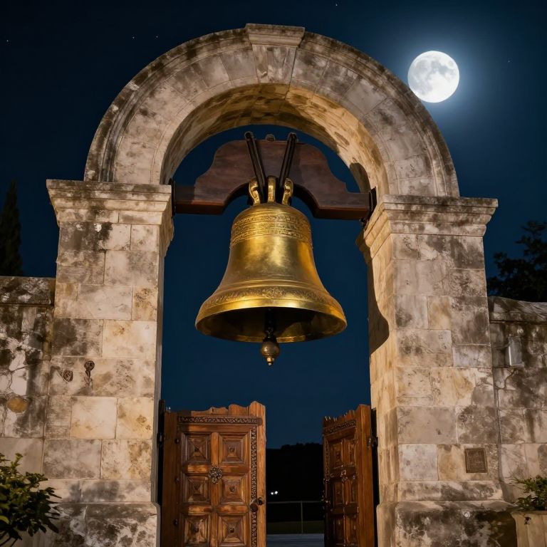 Majestic Moonlit Archway with Golden Bell