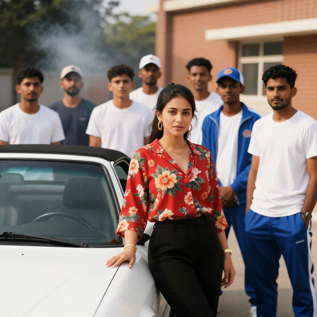 Young Man in Blues Amidst Gritty Scene