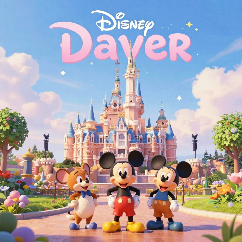Disney movie poster generator concept featuring whimsical animated characters, vibrant magical landscapes, enchanting castle in the background, playful typography, and bright pastel color palette, capturing the essence of a classic family-friendly adventure tale.