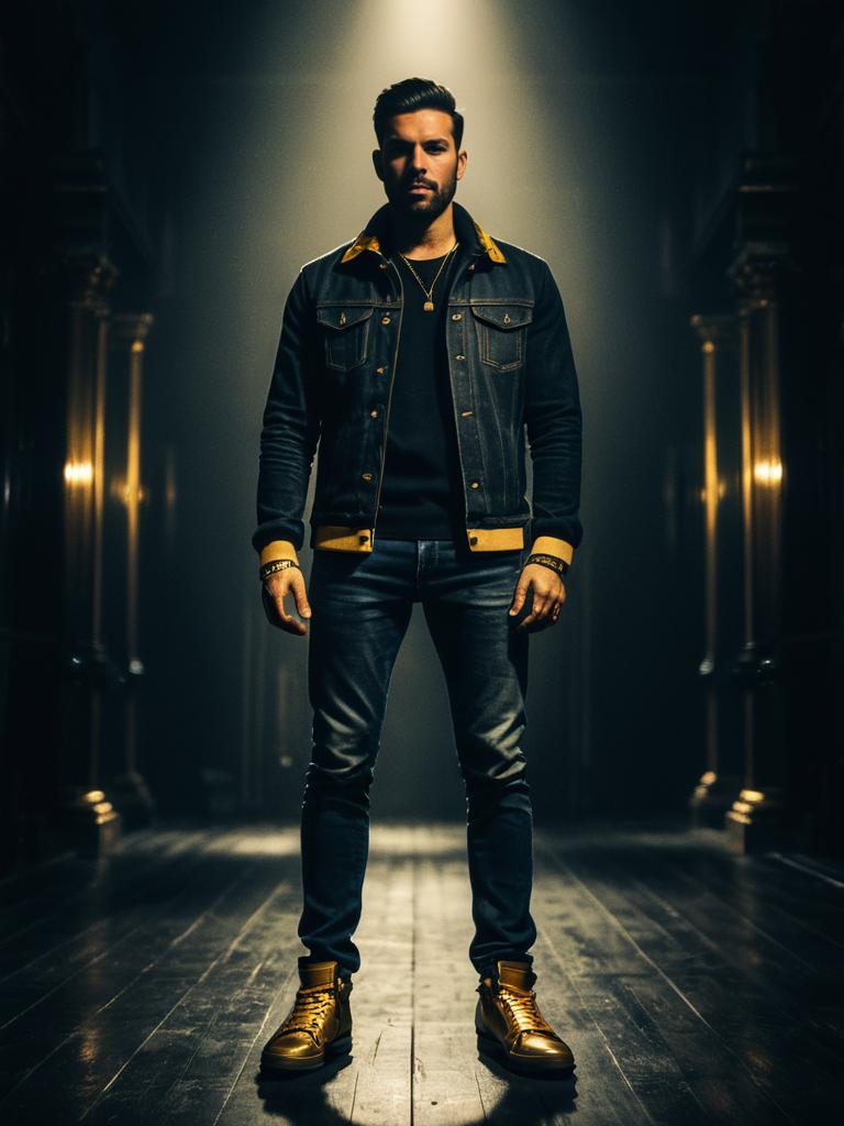 Man in Modern Fashion Outfit, photorealistic detailed studio portrait --sref 1391