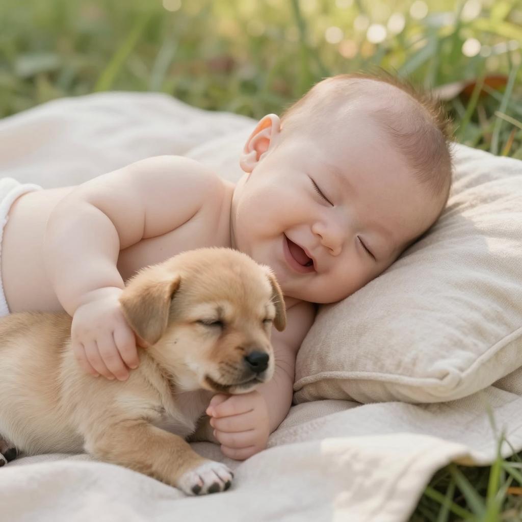 Bulldog Puppy and Baby Sharing a Tender Moment
