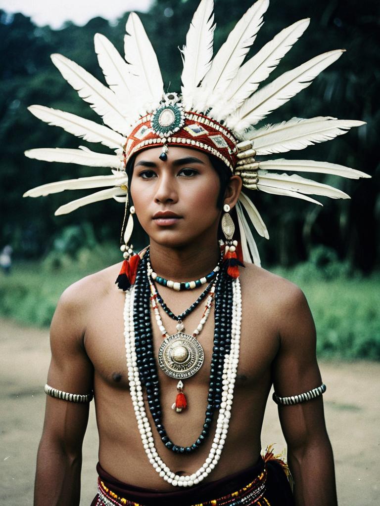 Buwan wika costume, solo, male focus, 1boy, jewelry, beads, necklace, bracelet, headdress, outdoors