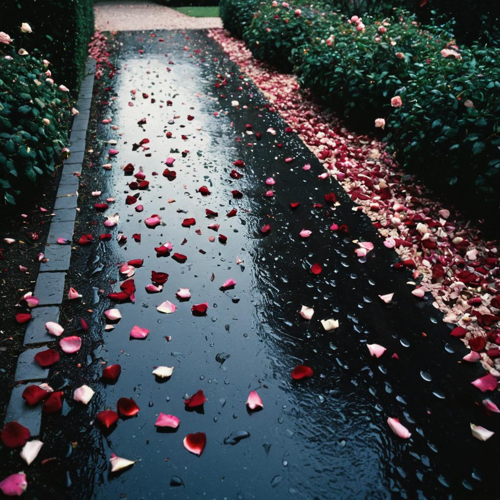 The image captures a fountain of water in a park. The suspended droplets and the smooth interplay of light and dark hues create a visually striking scene that portrays the elegant flow and contrast between the sparkling water and the greenery around it.