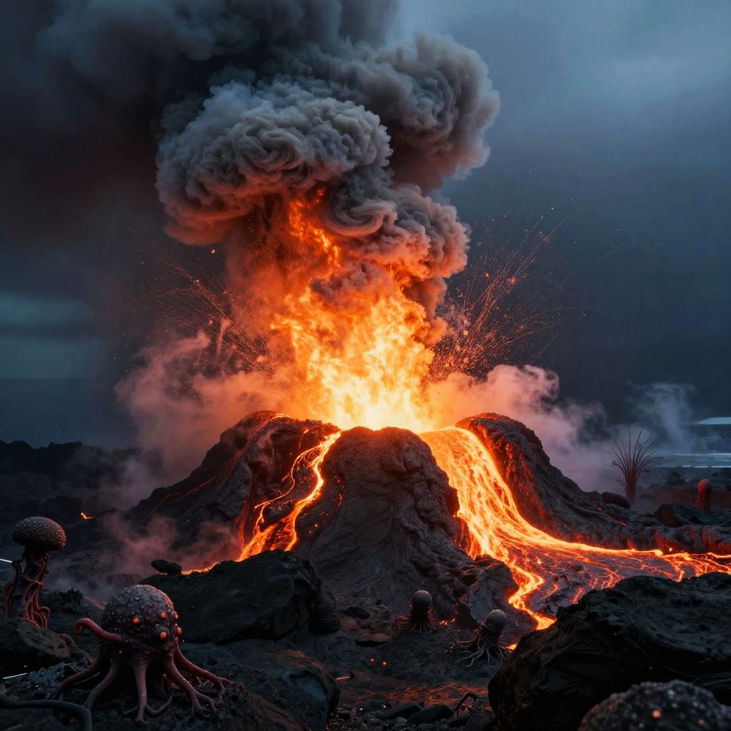Deep-Sea Volcanic Eruption Scene