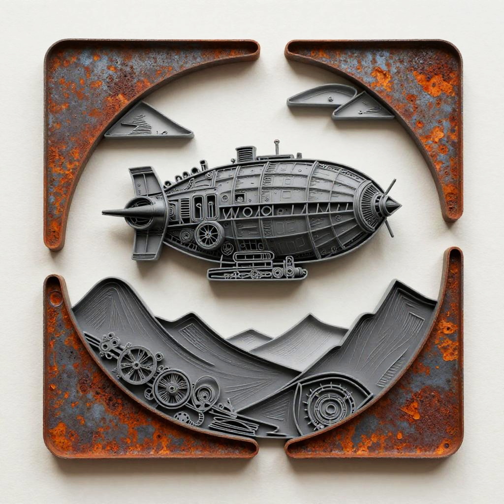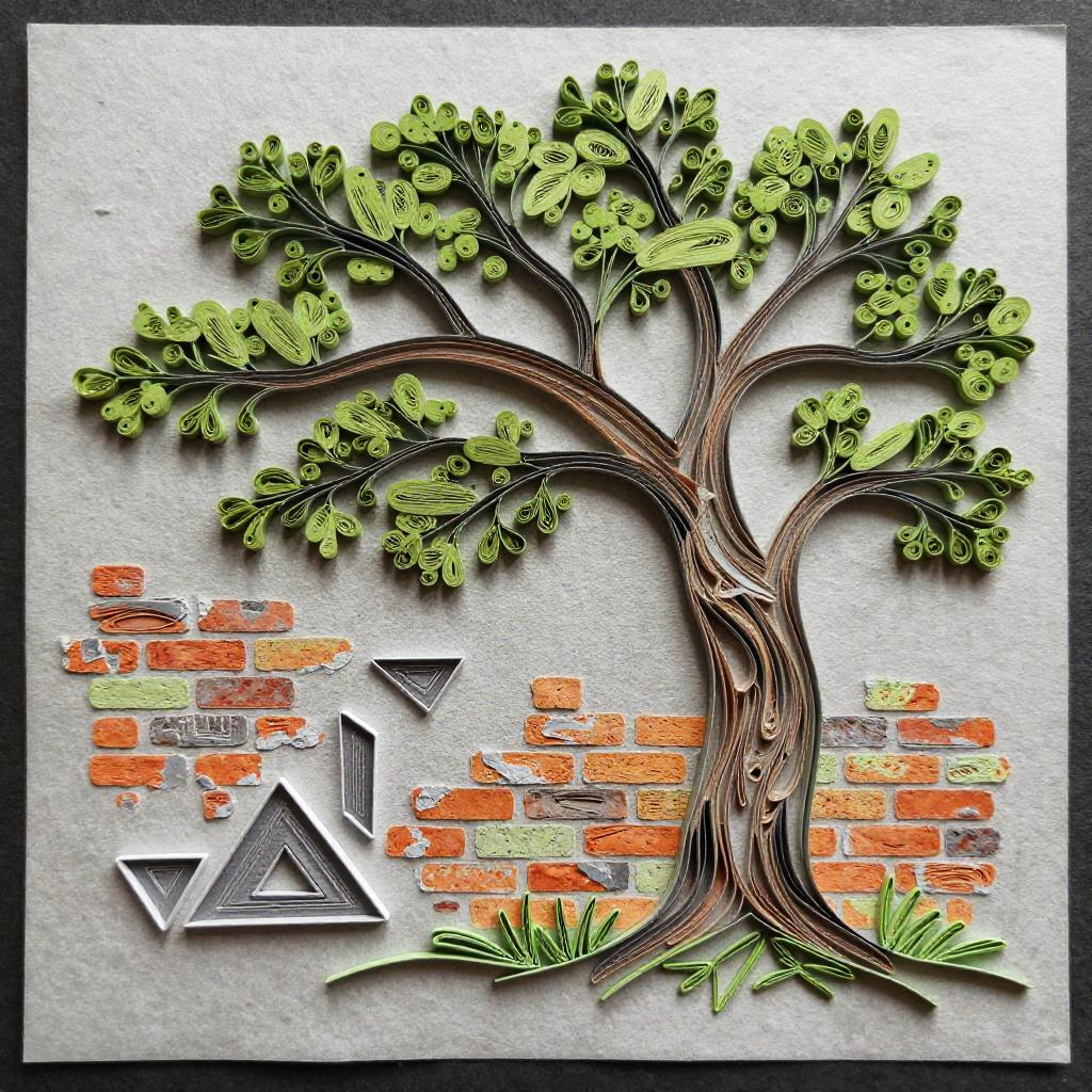 Scar paper quilling illustration, rustic wooden floorboards, antique gramophone with brass bell, abstract angular shapes, watercolor on paper, nostalgic brushwork, chalk gray color scheme, warm bronze, thick brushstrokes.