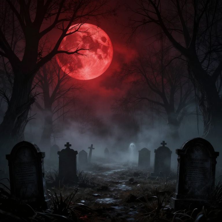 Macabre Cemetery Under Blood Moon