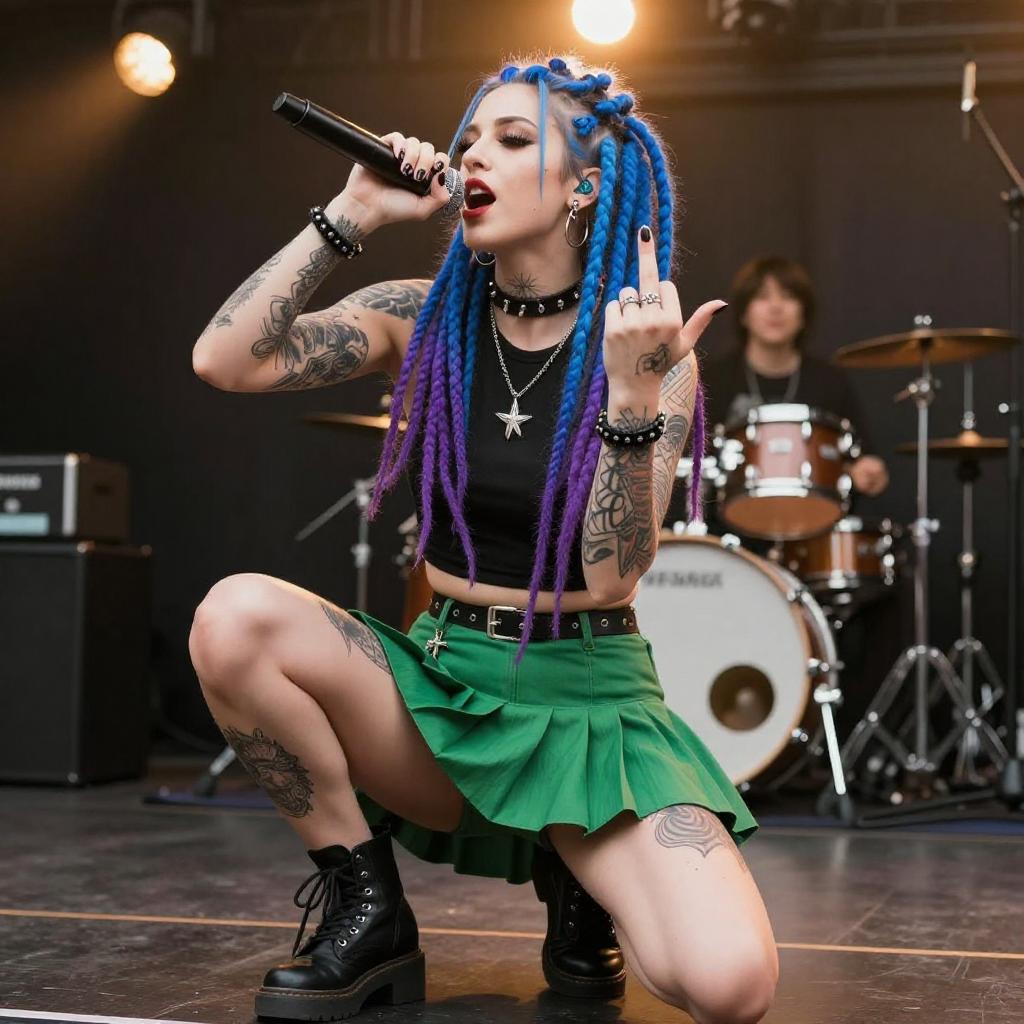 Woman with Blue-Green Dreadlocks Performing