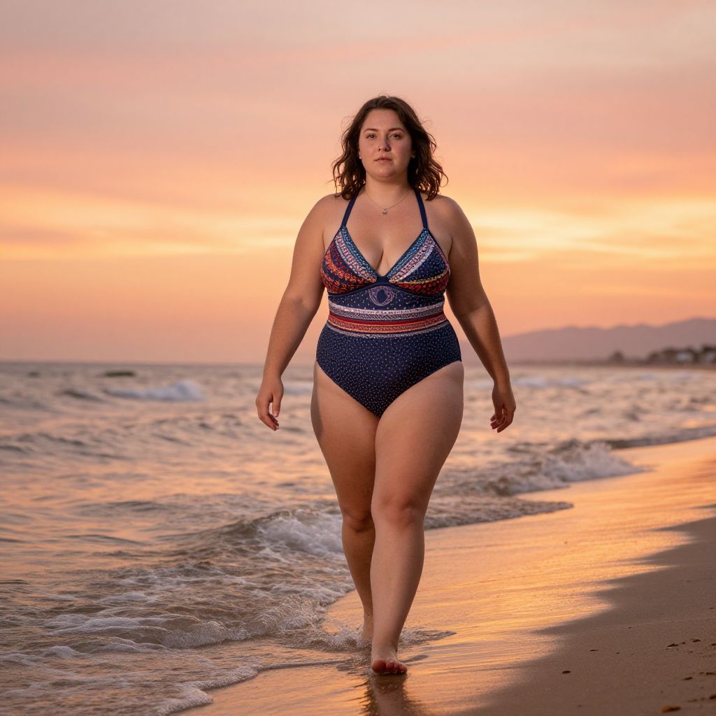 "sea siren plus size costume, 1girl, solo, breasts, long hair, beach, large breasts, sandals, plump, cleavage, shorts, midriff, navel, realistic, brown hair, crop top, short shorts Realistic photo of casual sexy person with pretty face"