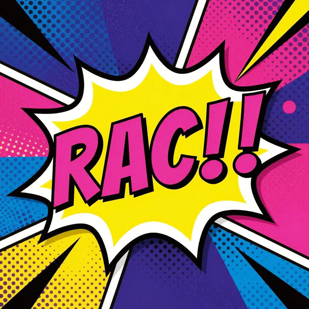 Convert image to pop art online with vibrant bold colors and halftone patterns, featuring playful comic book style elements, high contrast shadows, and a dynamic urban background filled with abstract shapes and dots for a retro 60s aesthetic.