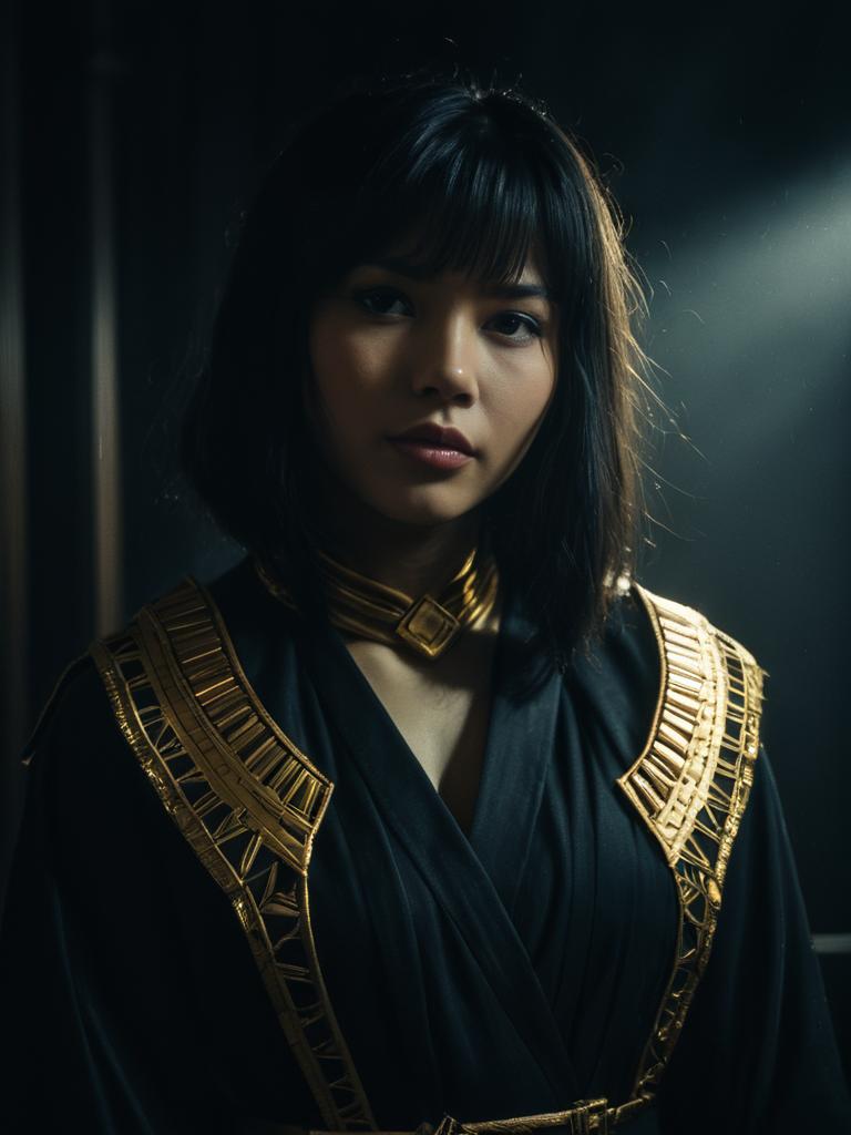 Sexy cosplay woman character wearing Yuki Nagato costume. Realistic photo. Jane Doe dressed as Yuki Nagato --sref 1391