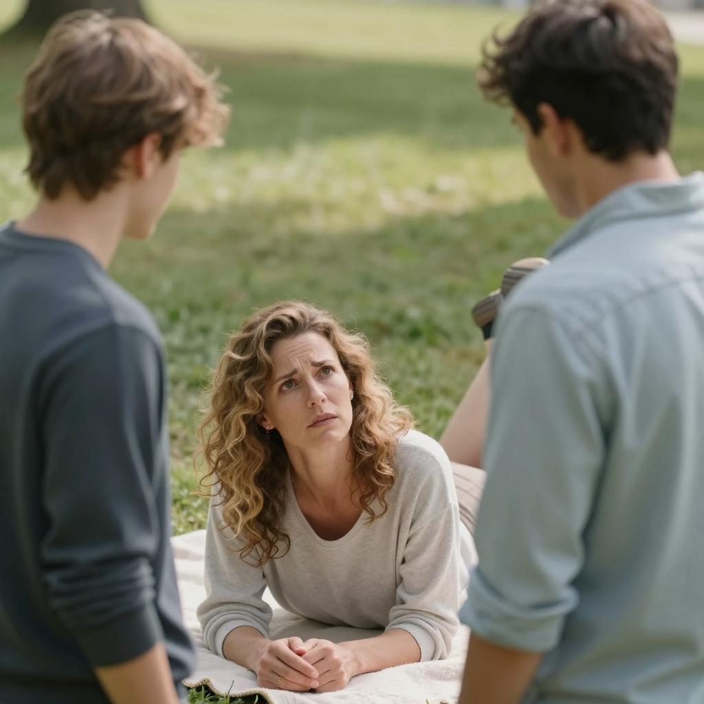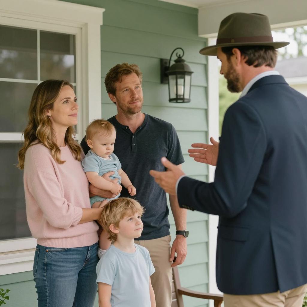 Photograph of a wooden barn with a group of 20 people. A standing woman in a black dress speaks to the seated group. People have various expressions, mostly neutral. Barn has wooden beams and sunlight filtering through. A child in a white shirt sits in the front. Women wear dresses, men in shirts. Earthy, rustic setting.