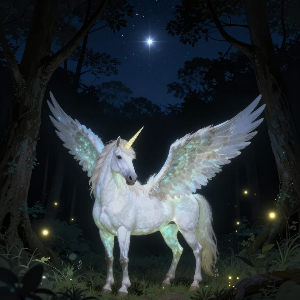 Magical Night Pegasus with Glowing Wings