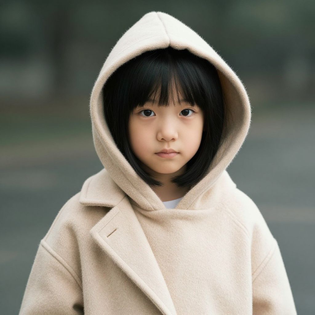 A person is wearing a green and red outfit with a hood. The hood has a watermelon design on it. The person is also wearing a white collar.