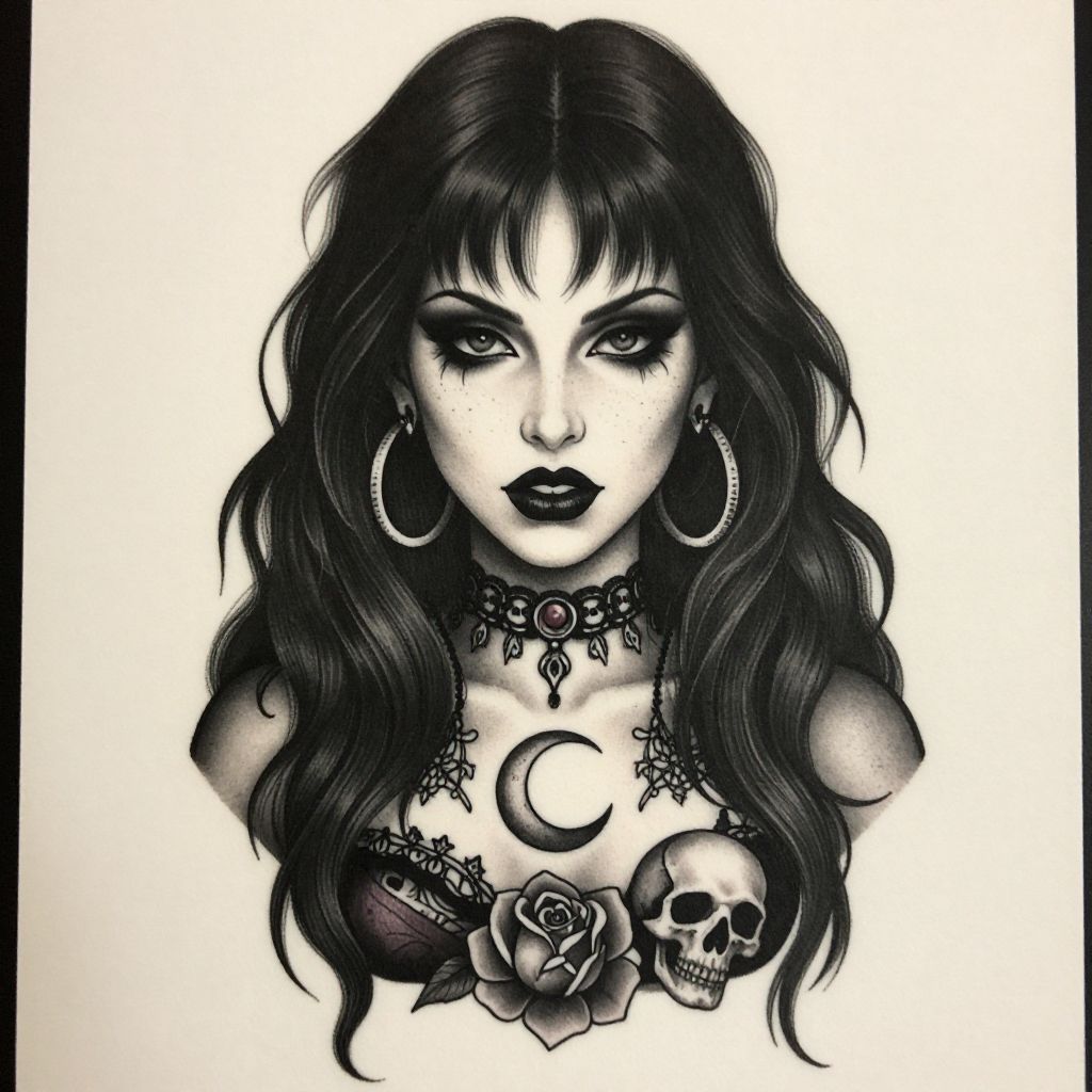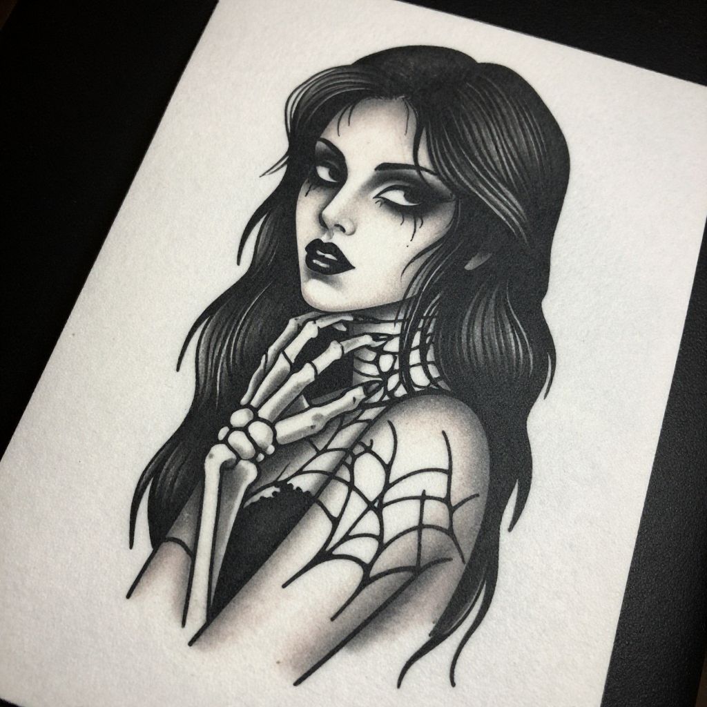 Gothic Woman with Skeletal Hand Tattoo