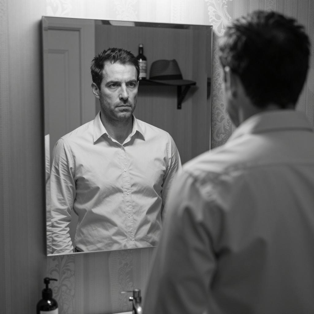 Serious Man Gazing Through Window