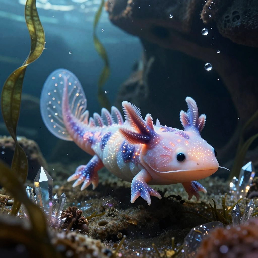 Water lizard Pokemon with translucent fins gliding through a magical lagoon, sparkling water droplets and ethereal glow, intricate scale patterns and aquatic bioluminescence, fantasy art style