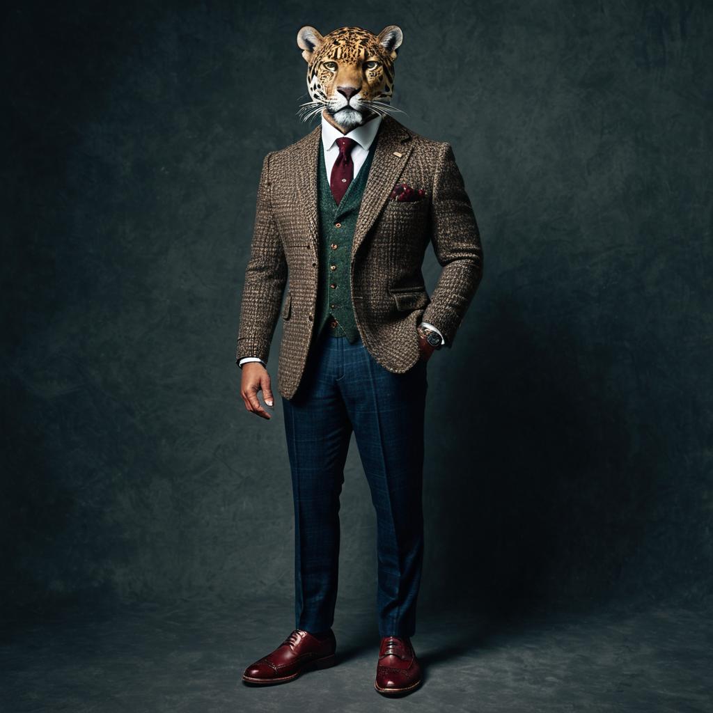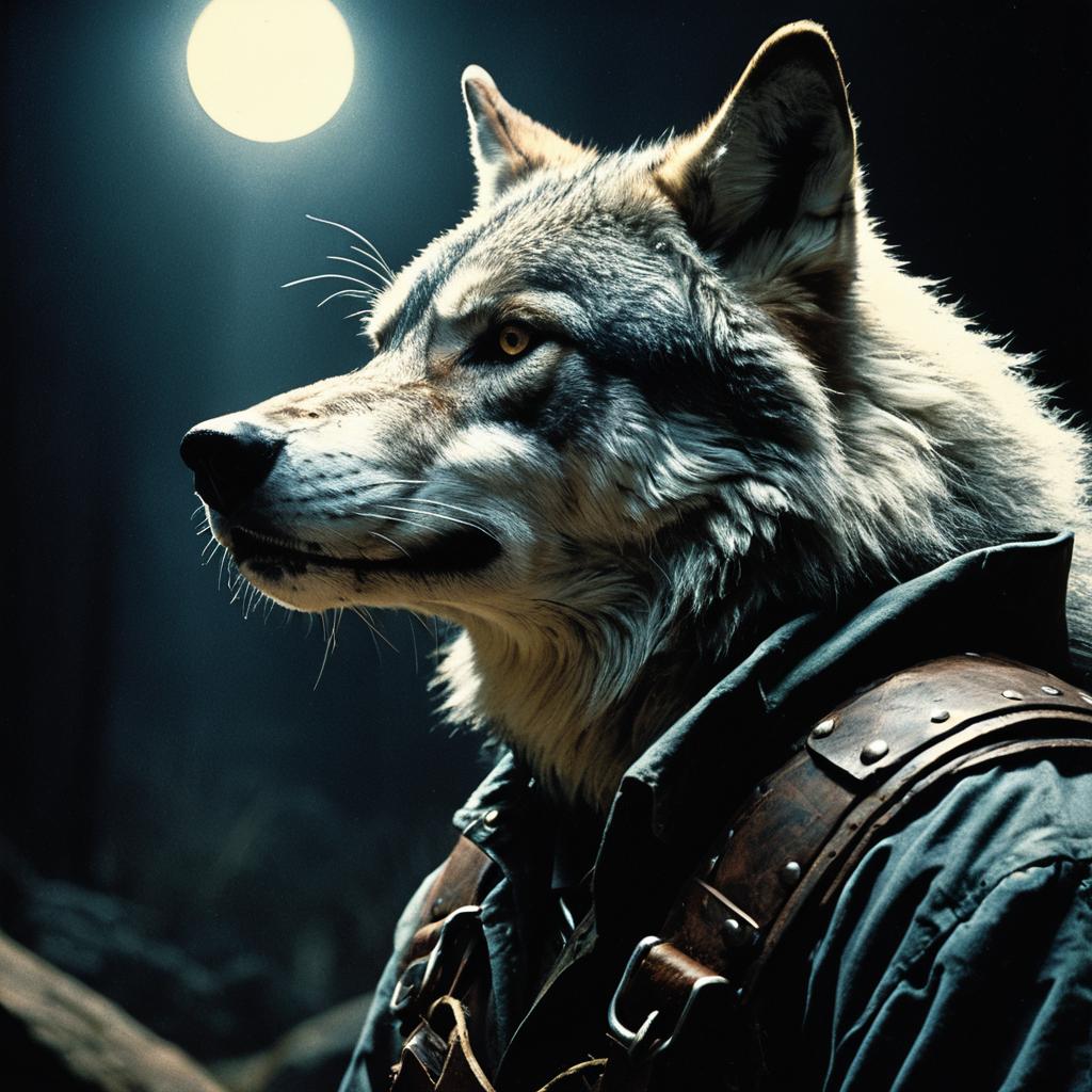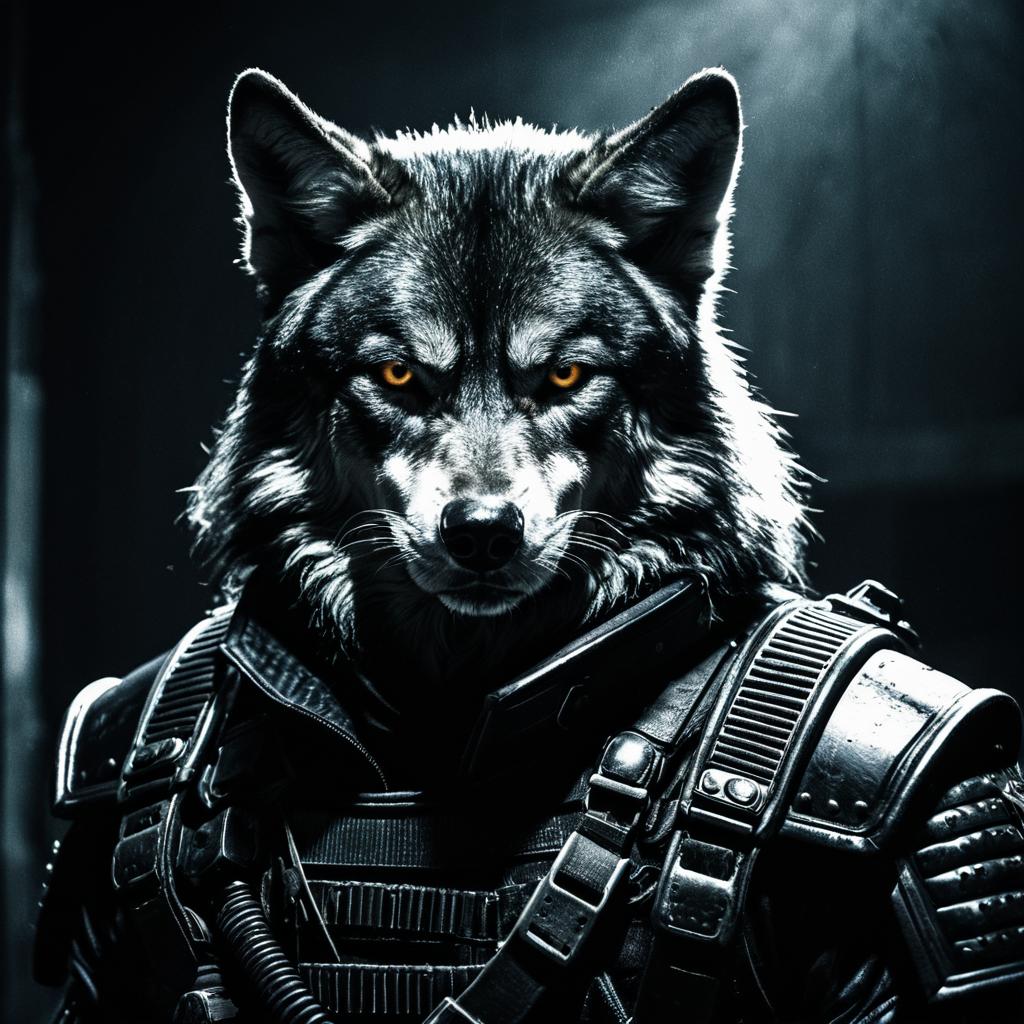 Hyper-realistic Wolf in Sophisticated Leather Attire