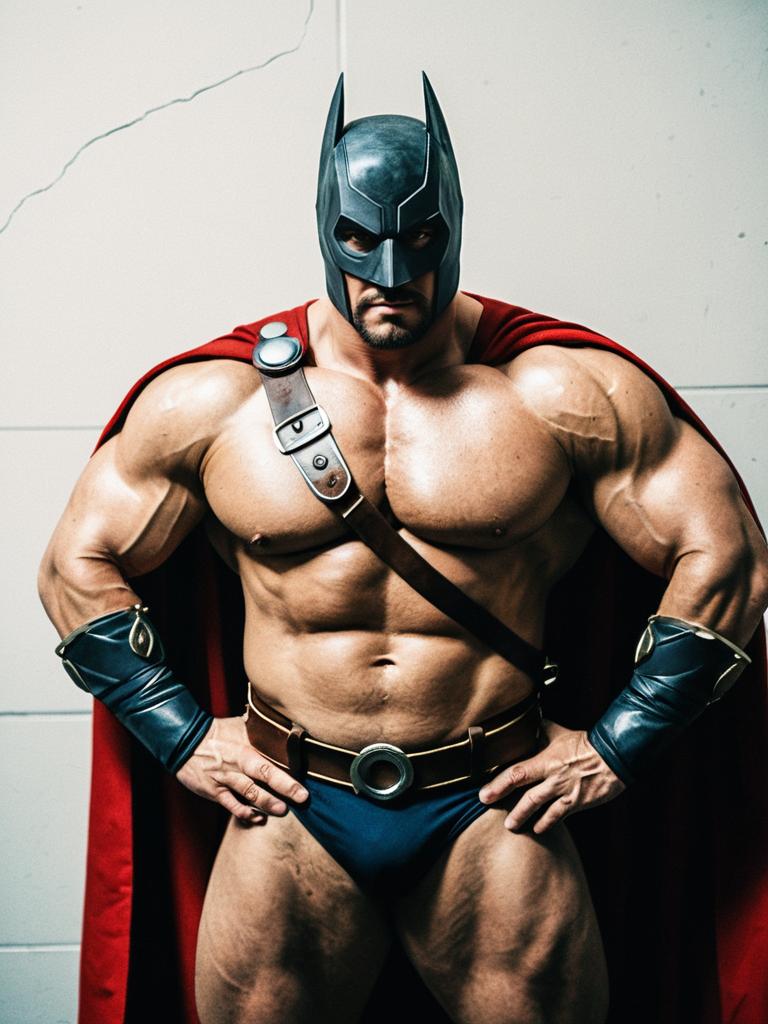 Man in Buff Male Costume, cosplay festival portrait, photorealistic realism