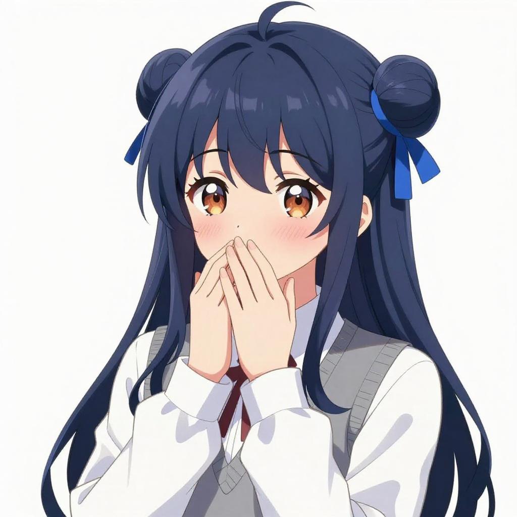 Anime Girl with Twin Buns and Thoughtful Expression